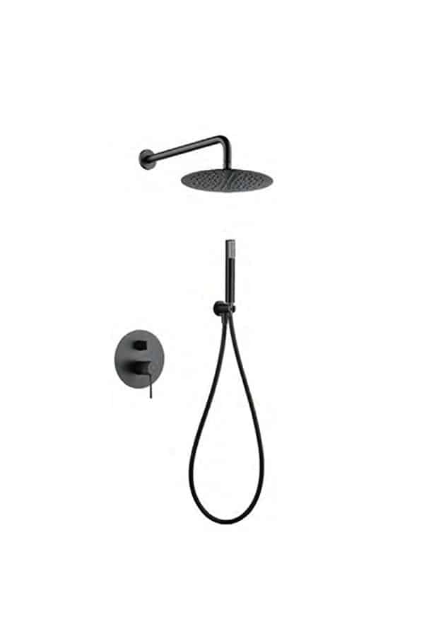Conjunto de ducha monomando empotrado black gun metal serie Line
