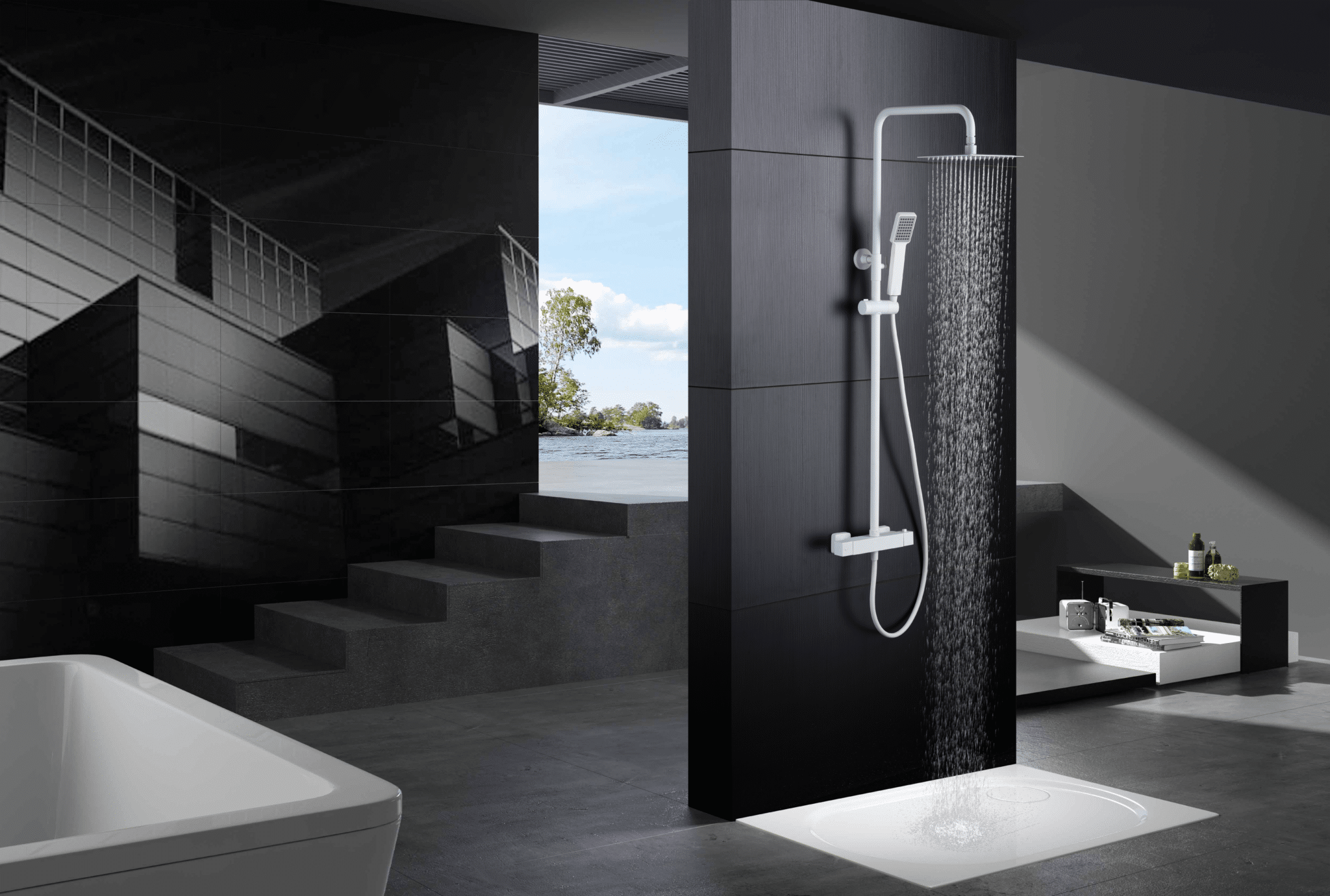 Barra de ducha termostática serie Art acabado blanco mate