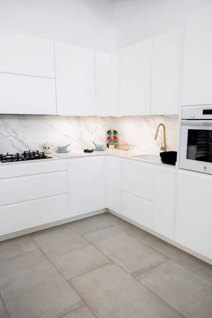 La cocina blanca sigue siendo un clásico atemporal. Los azulejos en tonos blancos amplían visualmente los espacios y aportan luminosidad.