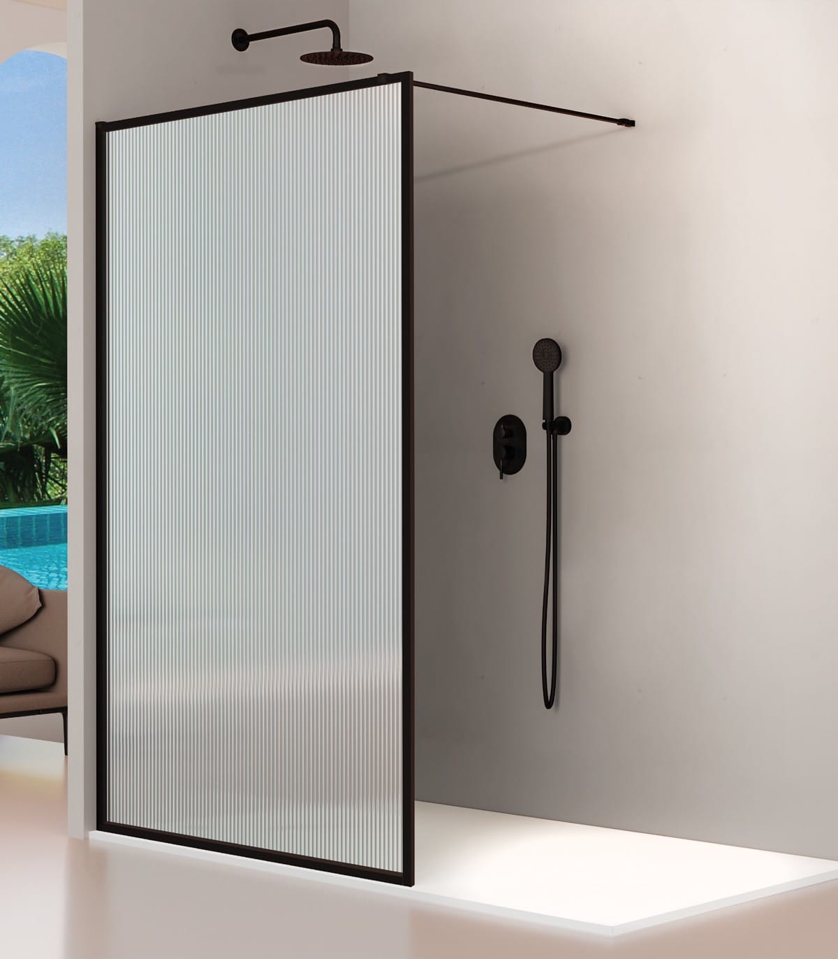 79,5-80,5cm. Vidrio acanalado. Perfilería negro mate.