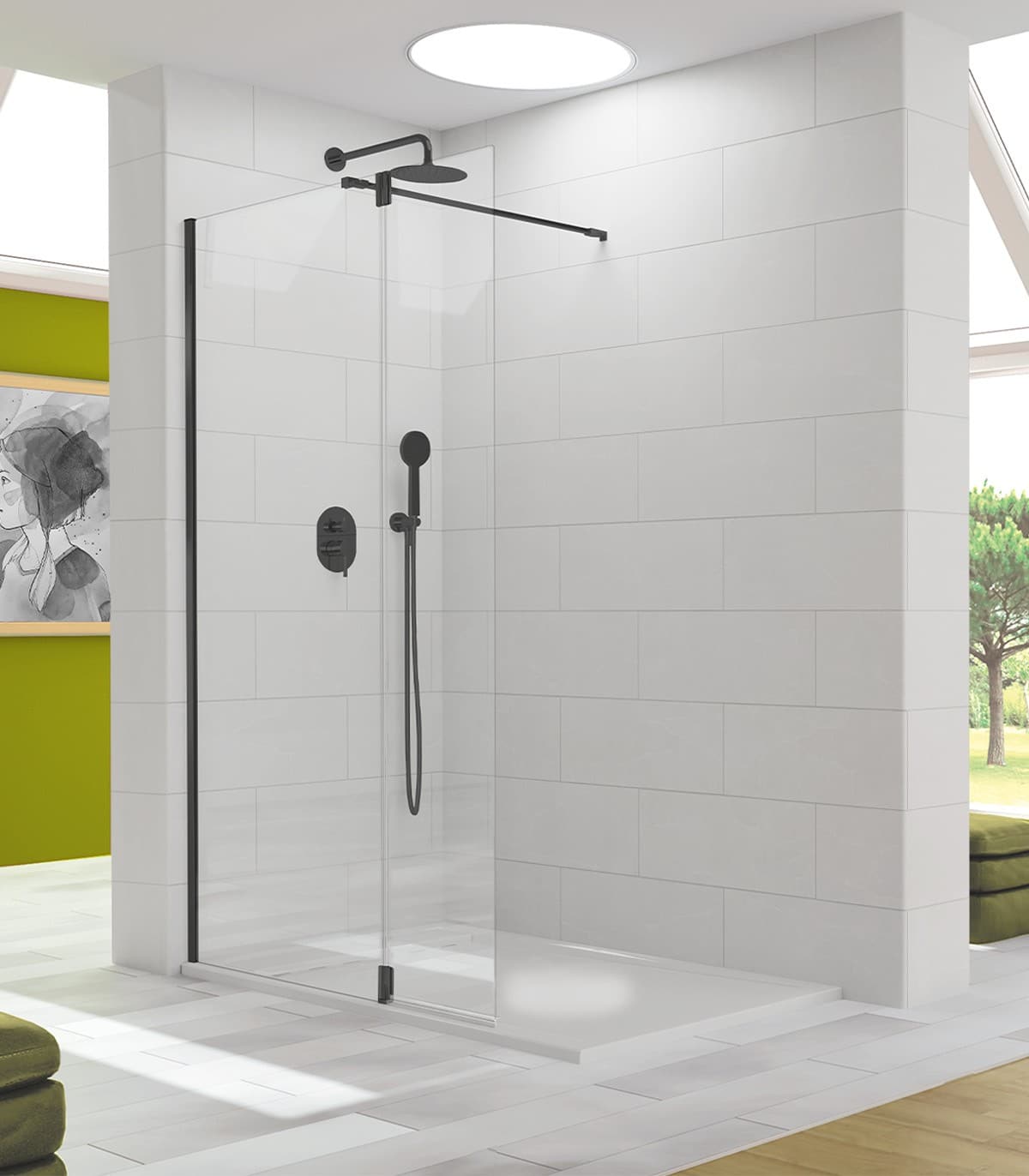 Panel Fijo de Ducha + Puerta Abatible