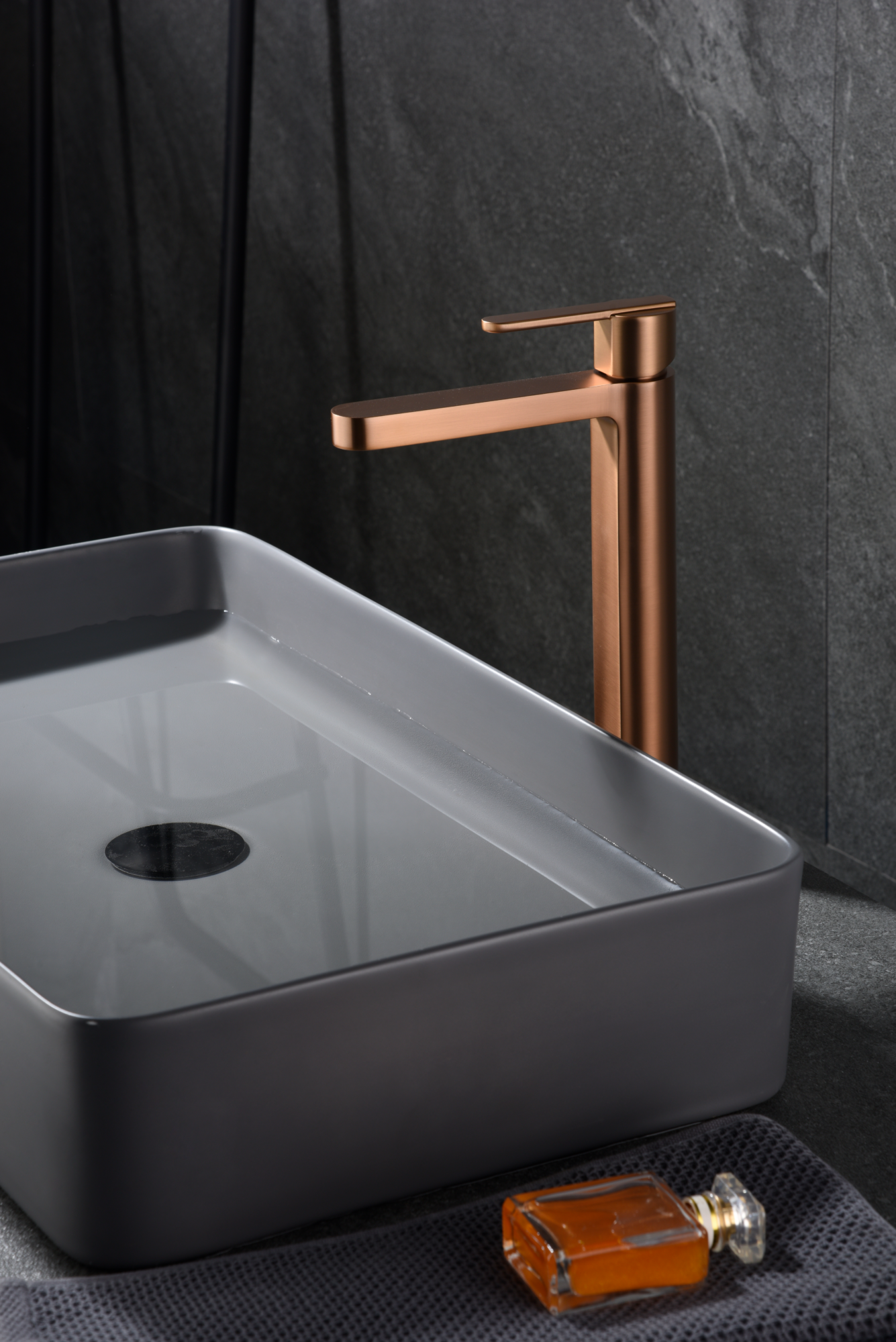 Monomando de lavabo alto oro rosa cepillado Roma