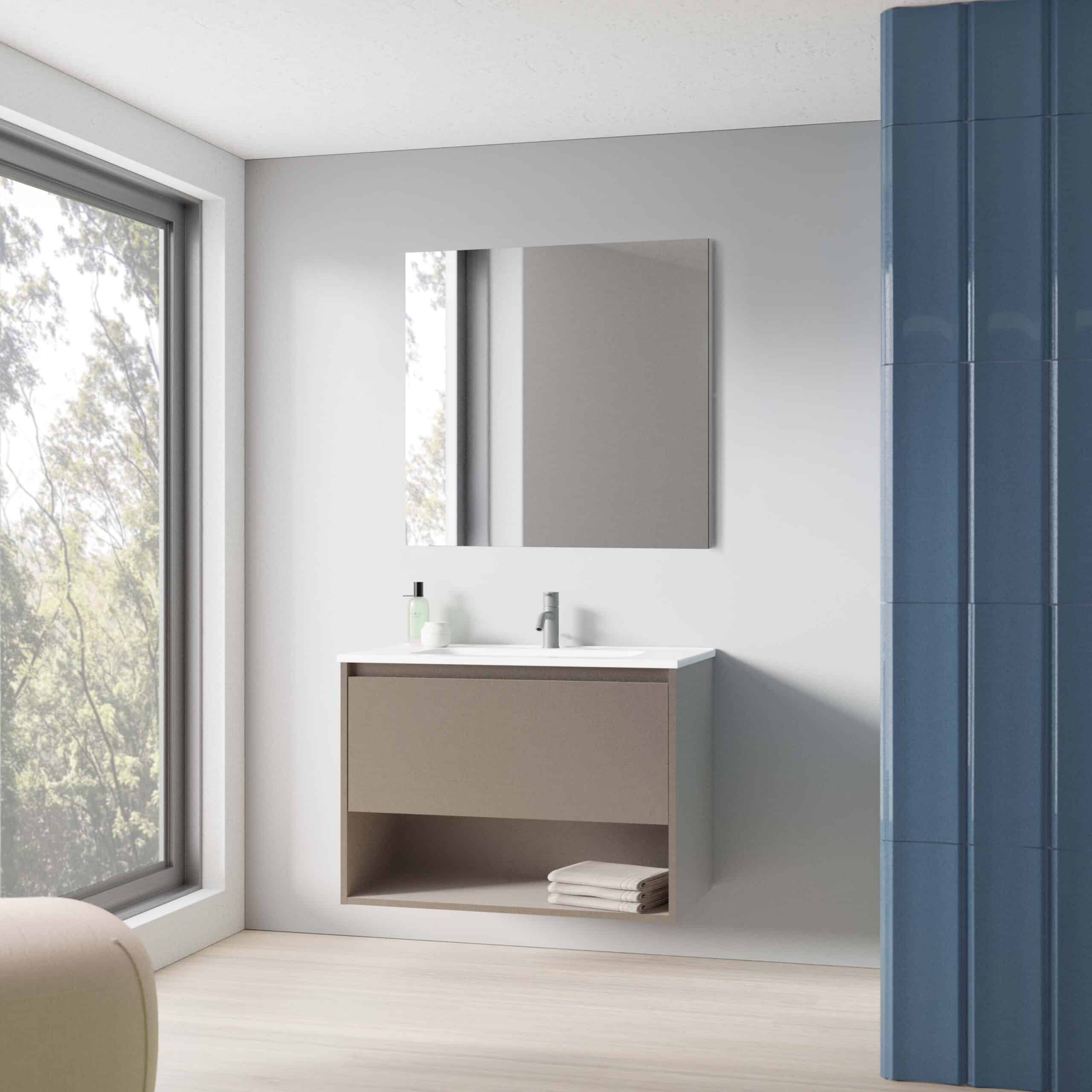 80cm 1cajón 1hueco y fondo 46cm. Color Fumé arenado MA14. (Grifería no incluida)