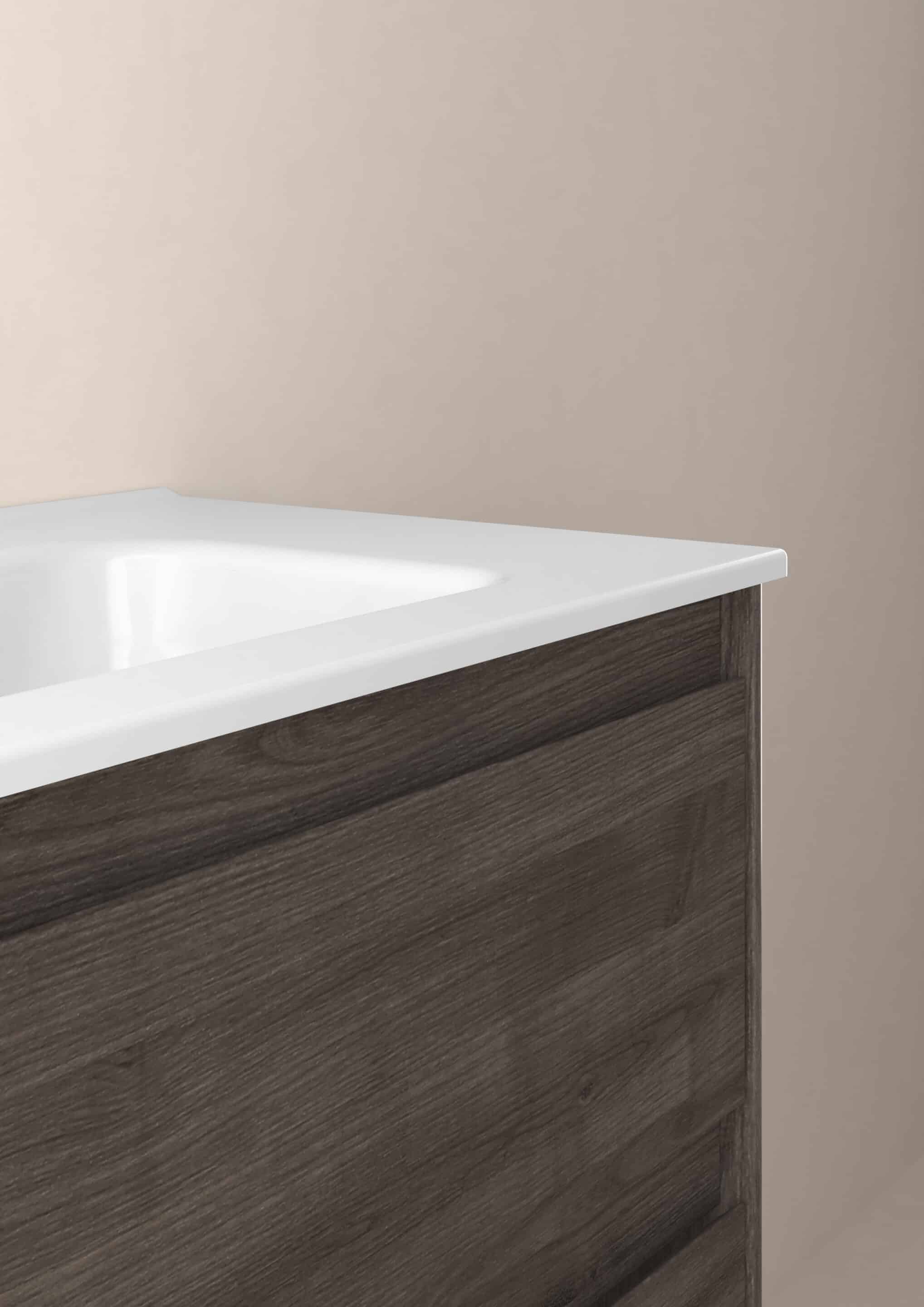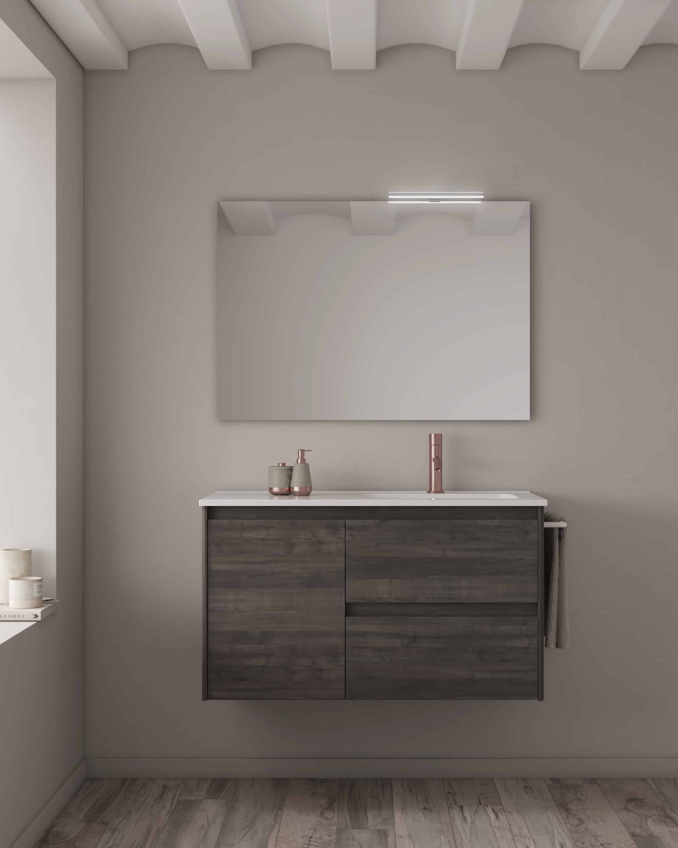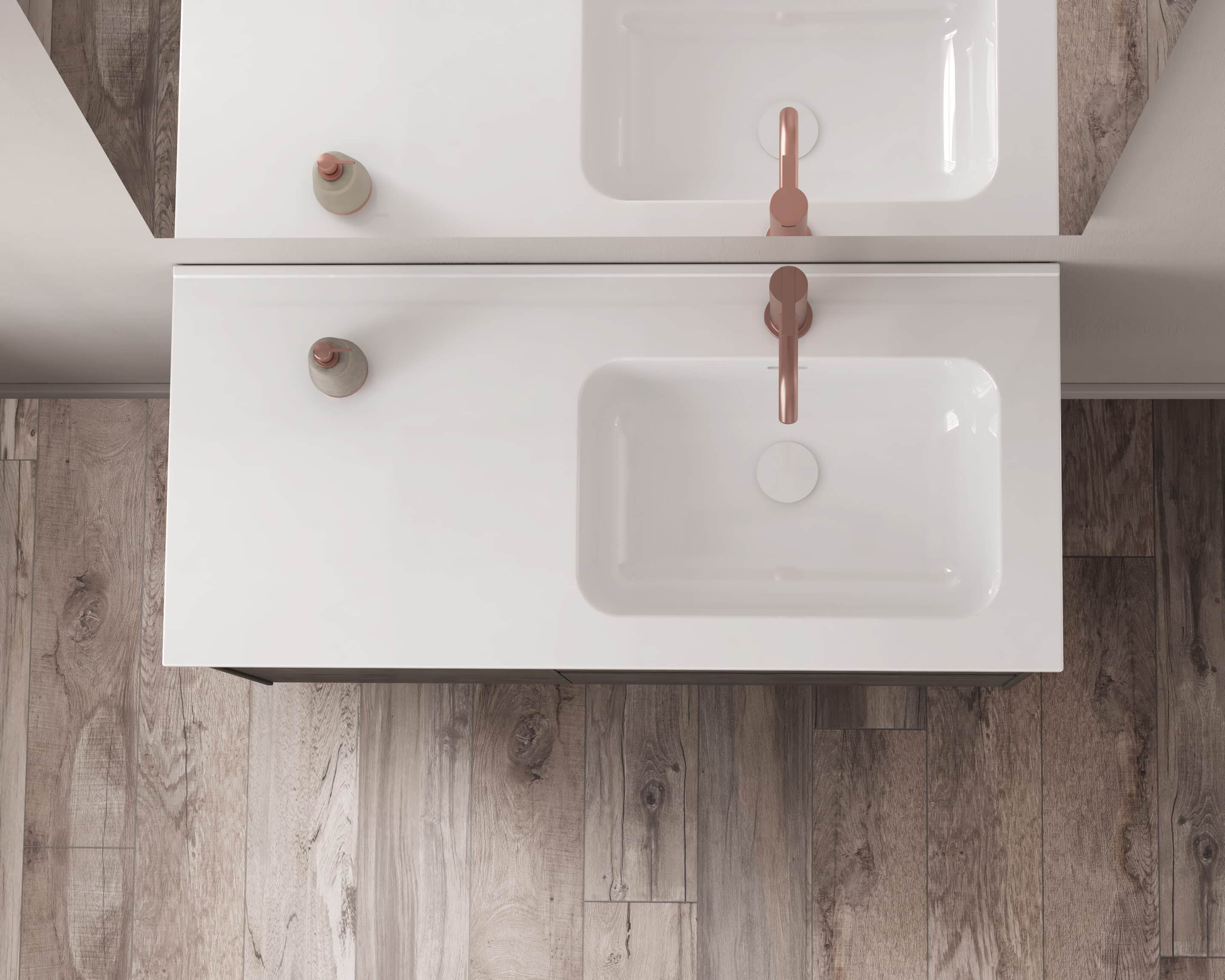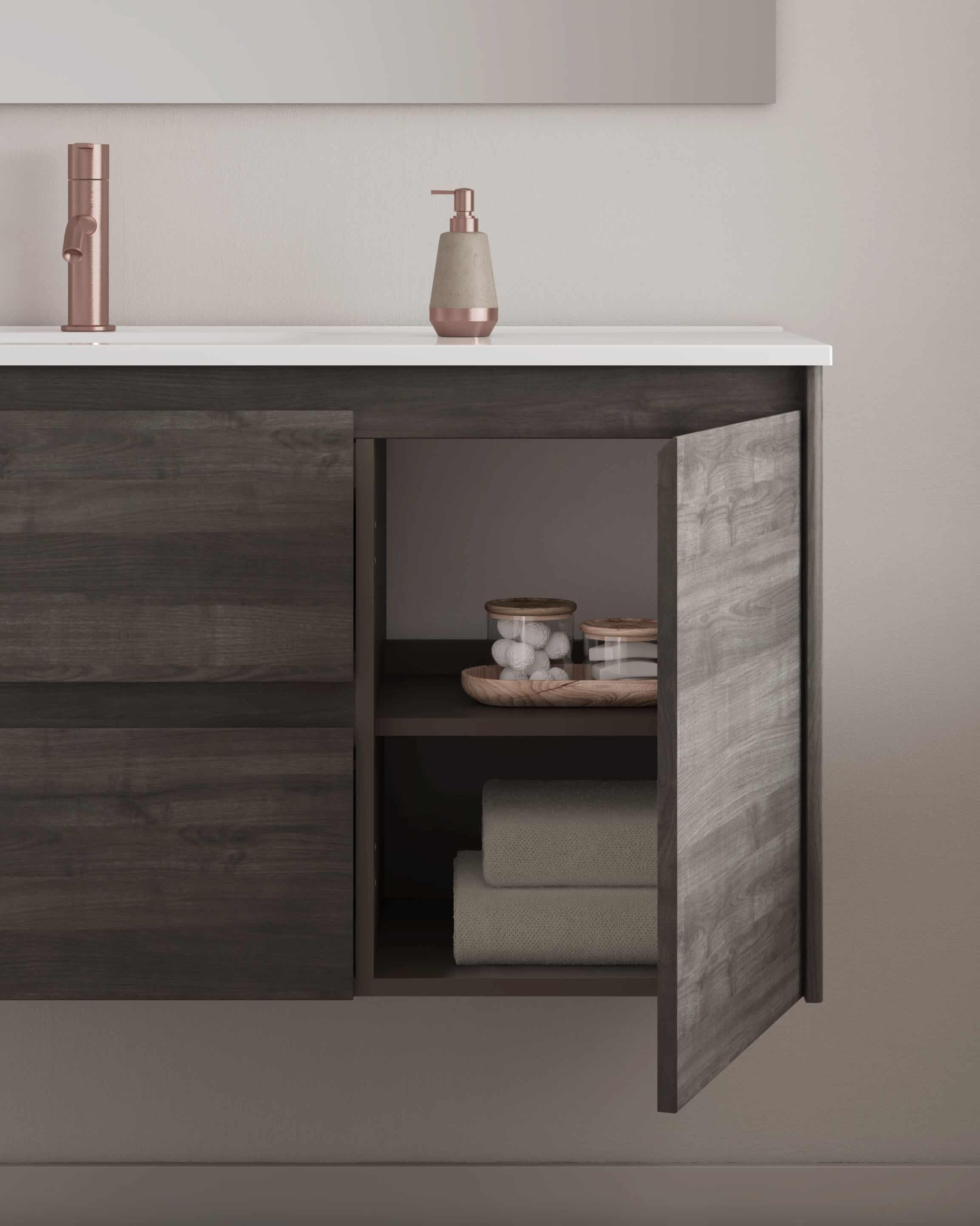 100cm 1puerta 2cajones y fondo 46cm. Seno desplazado a la derecha. Color Fresno samara FR2. (Grifería no incluida)