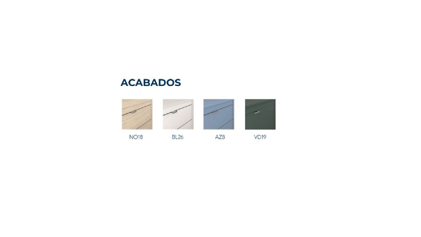 4 acabados de melamina disponibles y 3 acabados de tiradores (Blanco, Antracita e Inox).