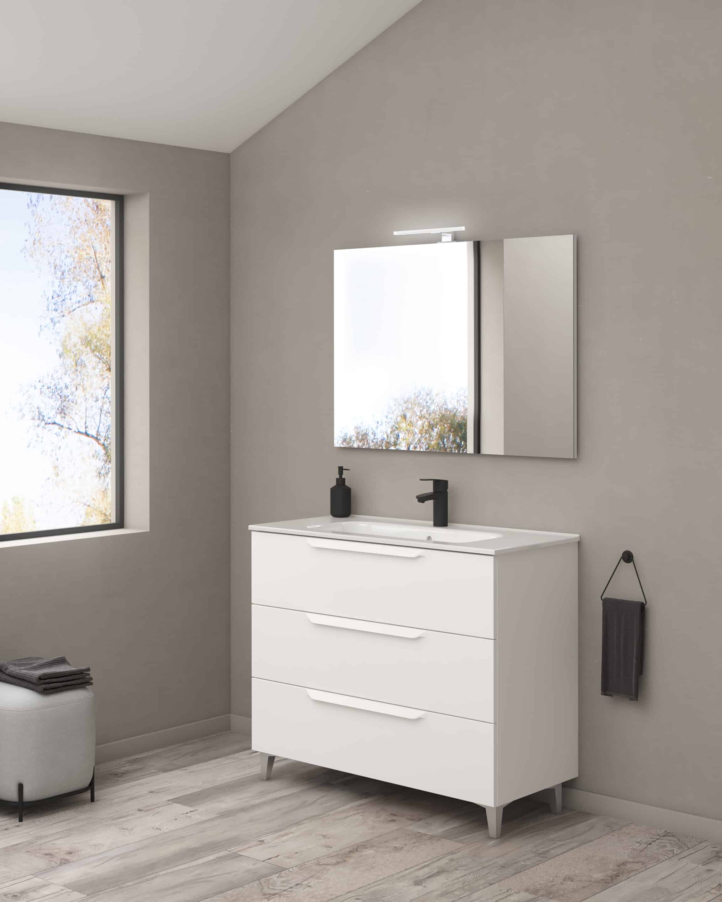 100cm 3cajones y fondo 46cm. Color blanco mate BL20M. (Grifería no incluida)